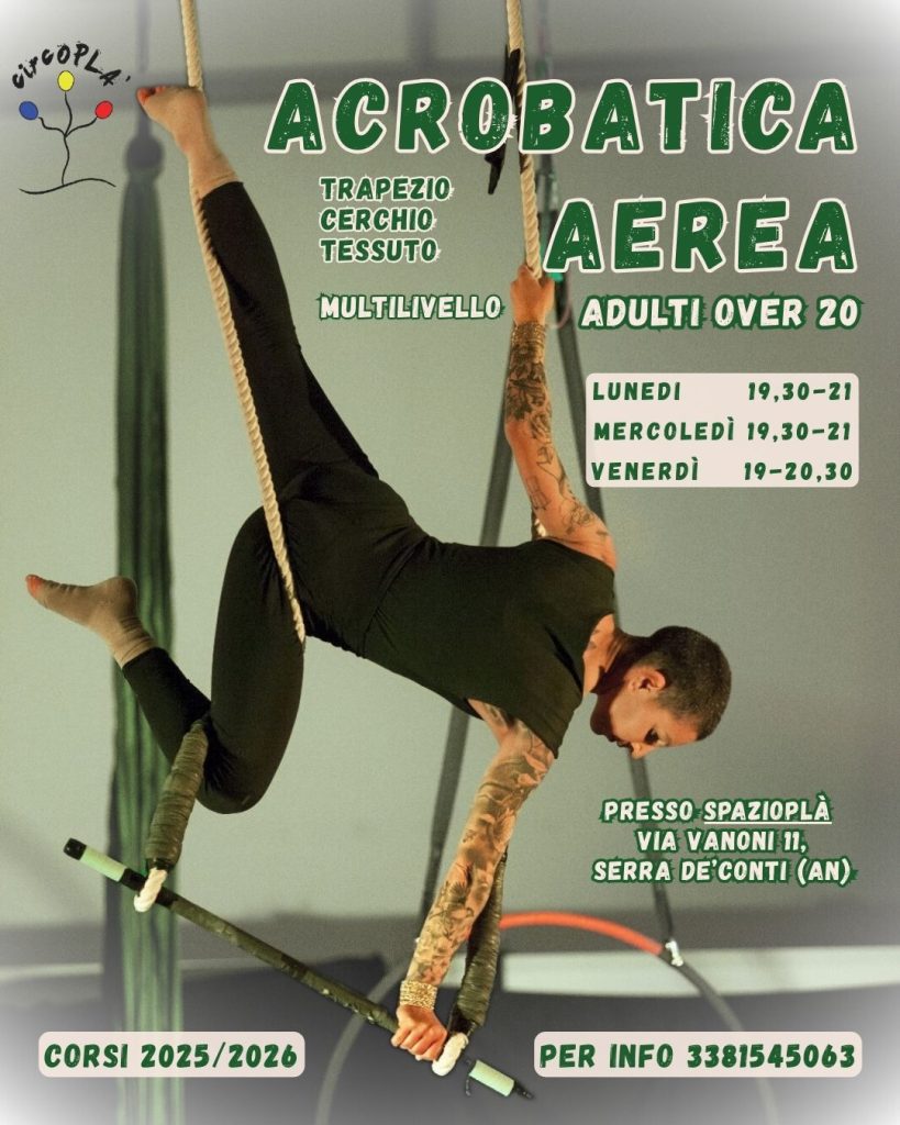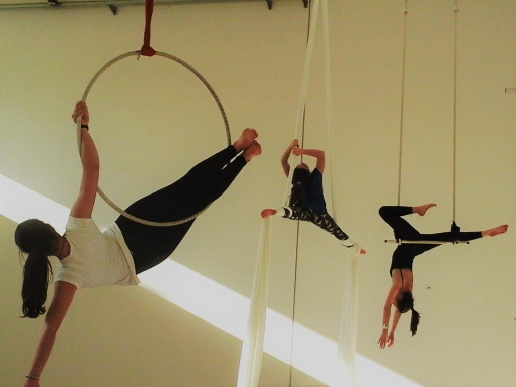 Cioè GINNASTICA ACROBATICA, fortifica il corpo e la mente in modo completo, integrando tecnica e creatività con l’emozione di stare sospesi in aria su tessuti, trapezio e cerchio.